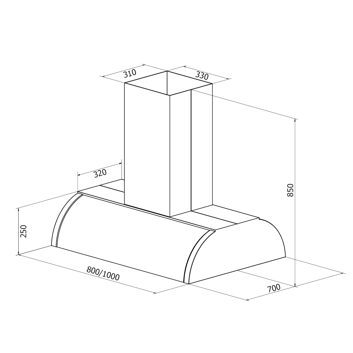 Cetus Sense fritthengende leveres i 80 eller 100 cm bredde. Både kjøkkenhettens «base» og kantlistene kan leveres i alle våre PVD-metaller i børstet eller høyglans utførelse, eller lakkert i valgfri farge, akkurat slik du måtte ønske.