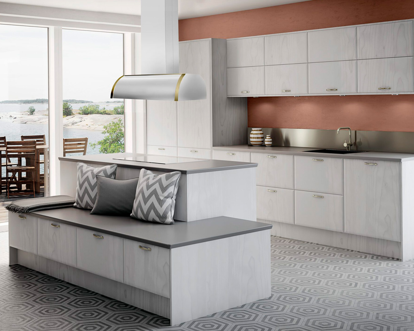 Hva med å få Cetus Sense fritthengende levert i samme metallutførelse som andre detaljer på kjøkkenet ditt? Eller lakkert i en sprek farge for å fremheve og skape blikkfang over kjøkkenøya?