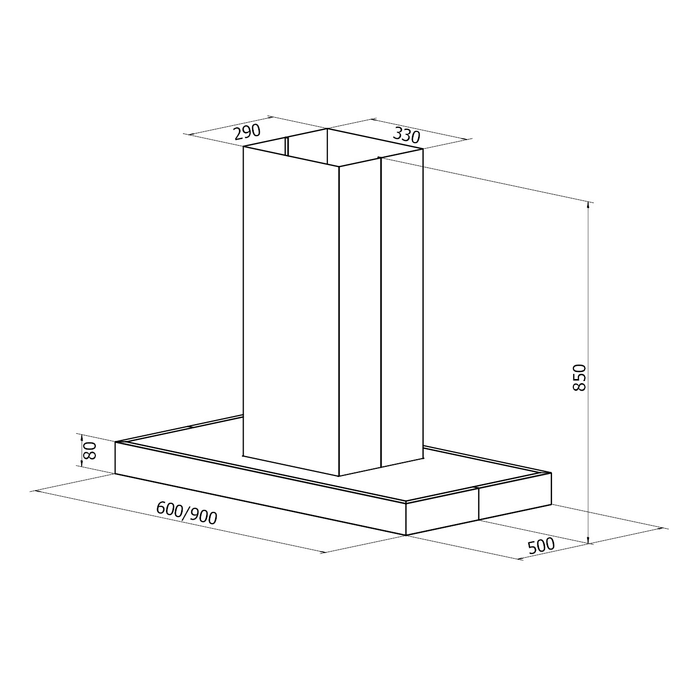 Hera fritthengende kjøkkenhette kan spesialtilpasses: