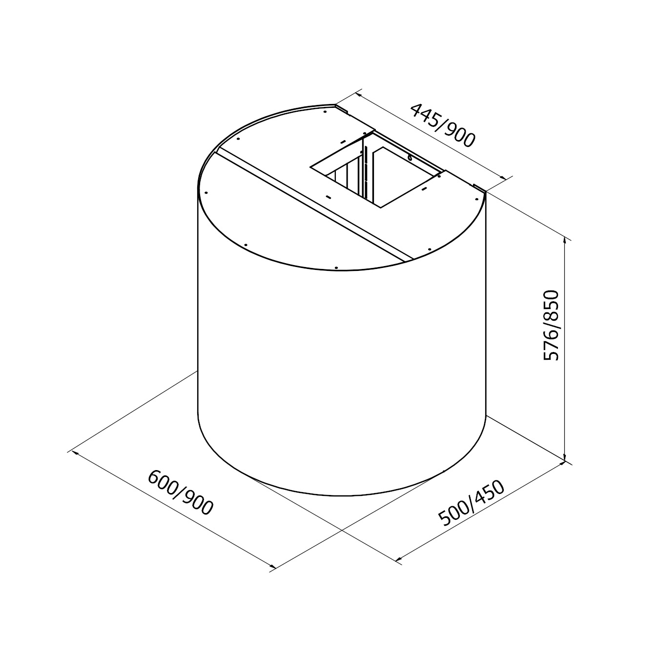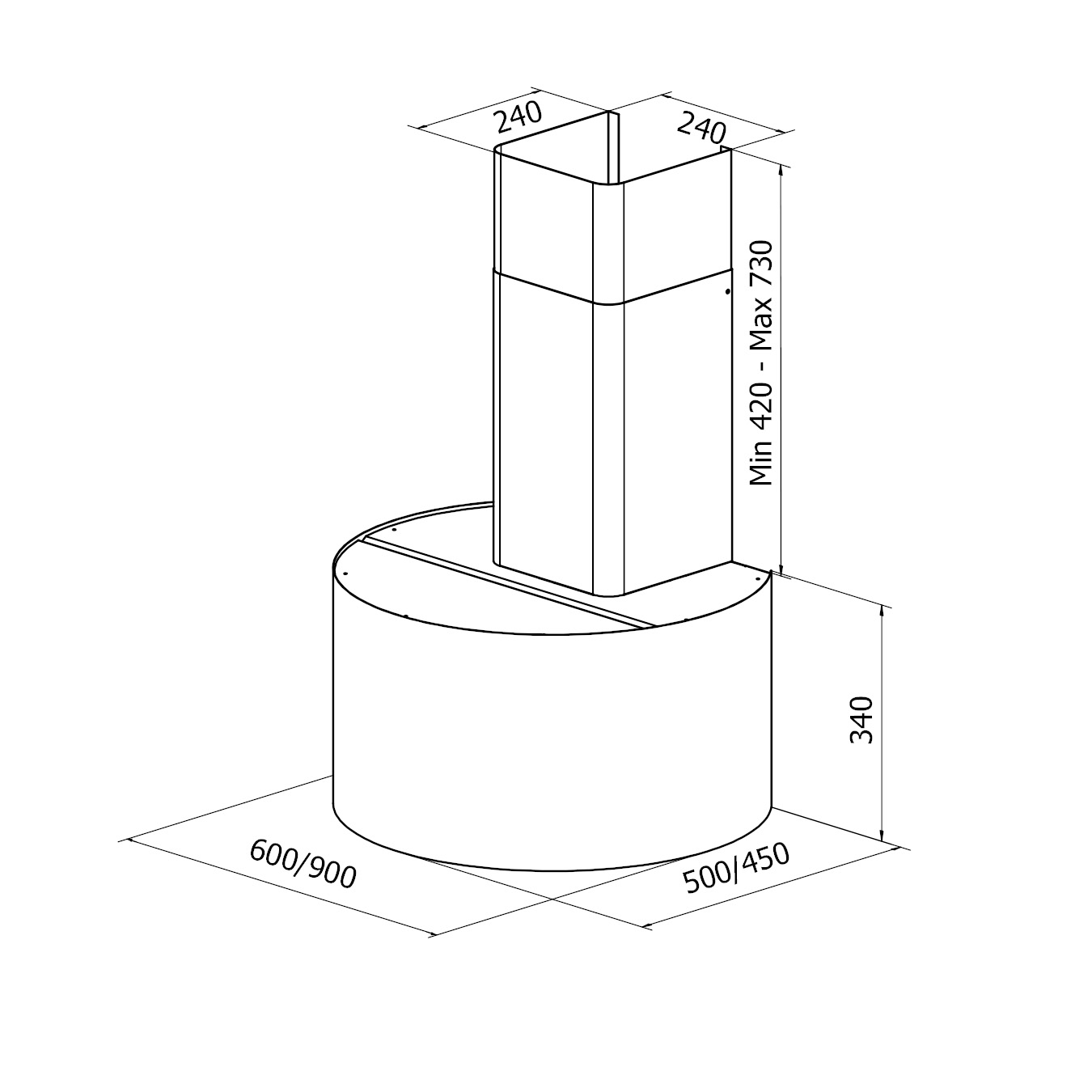Luna Sense veggmontert kjøkkenhette leveres i to standardhøyder, 60 eller 90 cm – med og uten teleskopisk kanal.