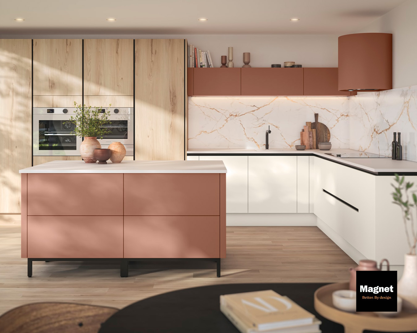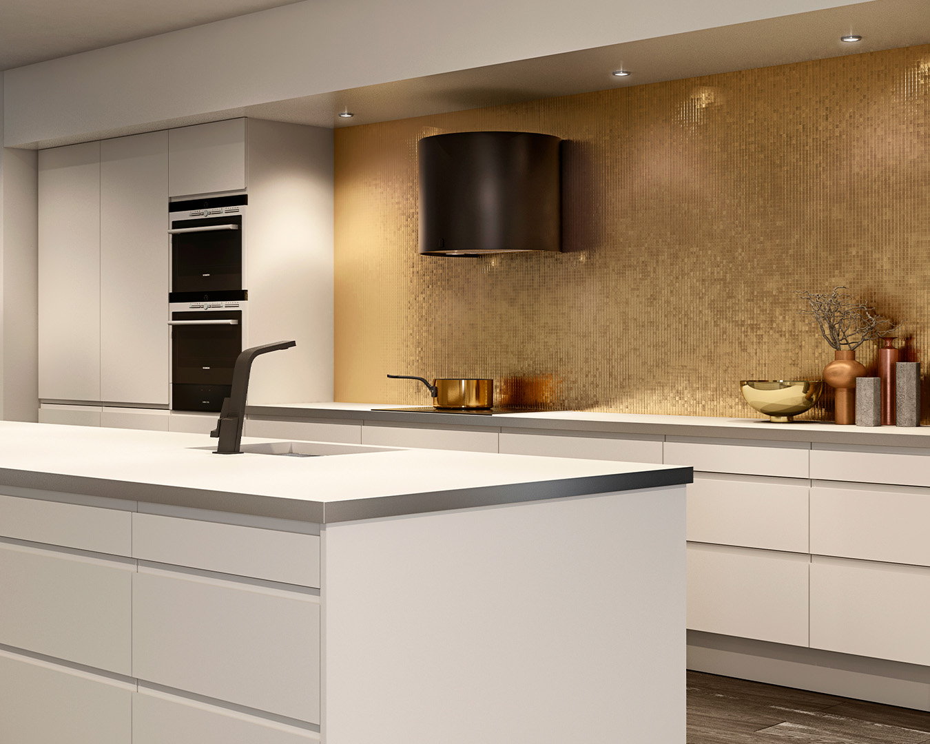Velg mellom våre fire ulike PVD-metaller i børstet eller høyglans utførelse, eller få kjøkkenhetten lakkert i valgfri farge for å matche eller stå i kontrast til innredningen eller veggfargen.