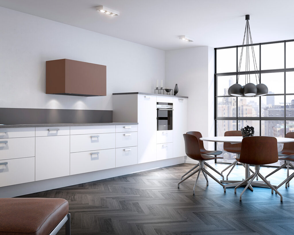 Velg mellom våre fire ulike PVD-metaller i børstet eller høyglans utførelse, eller få kjøkkenhetten lakkert i valgfri farge for å matche eller stå i kontrast til innredningen eller veggfargen.