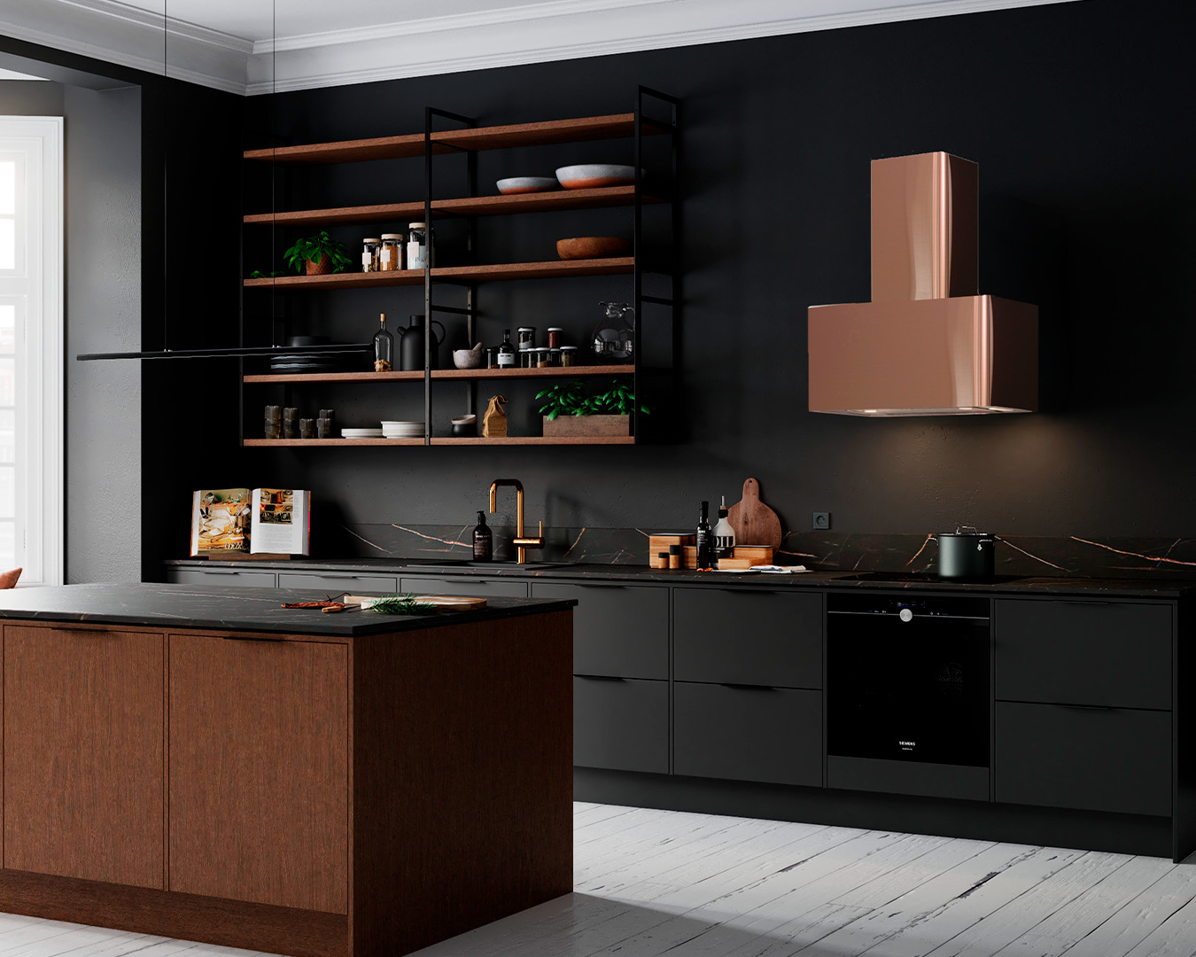 Velg mellom våre fire ulike PVD-metaller i børstet utførelse, eller få kjøkkenhetten lakkert i valgfri farge for å matche eller stå i kontrast til innredningen eller veggfargen.