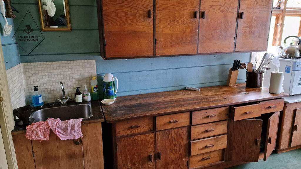 Bilder fra kjøkkenet før Eventyrlig Oppussing «flyttet inn».